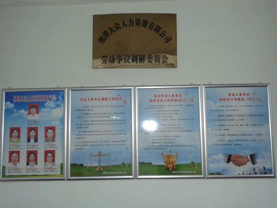 為了規(guī)范勞動人事爭議預防調(diào)解處理工作,維護社會和諧穩(wěn)定,按照潭人社發(fā)【2014】29號文件要求,根據(jù)《中華人民共和國勞動爭議調(diào)解仲裁法》等法律法規(guī)精神,湘潭大眾人力資源有限公司于2014年6月13日調(diào)整規(guī)范了勞動爭議調(diào)解委員會,并對委員會成員、工作程序、工作職責、行為規(guī)范進行了上墻公示。