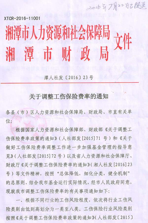 《關(guān)于調(diào)整工傷保險費(fèi)率的通知》